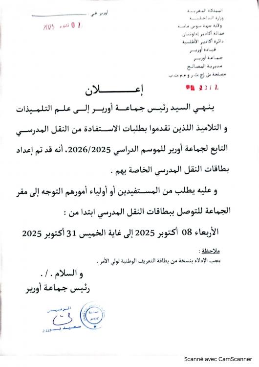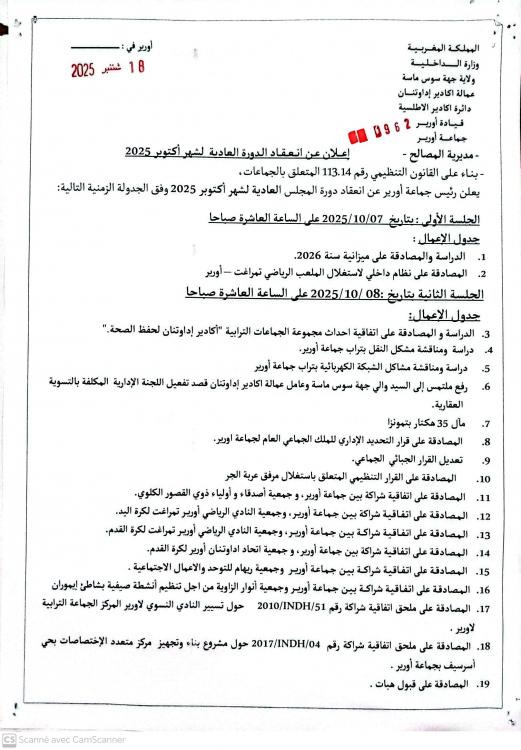 اعلان عن انعقاد الدورة العادية لشهر اكتوبر 2025