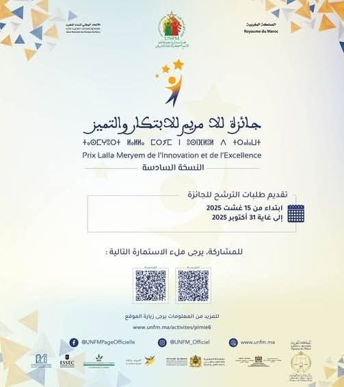 يعلن الاتحاد الوطني لنساء المغرب عن إطلاق النسخة السادسة من "جائزة للا مريم للإبتكار والتميز".